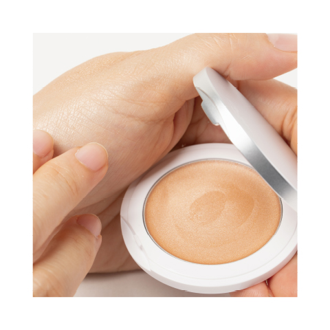 小ジワやシミなどを光で飛ばして上品なツヤを与えるコンパクト状のハイライトクリーム。乾燥しやすい頬などを、しっとりやさしく包み込むテクスチュア