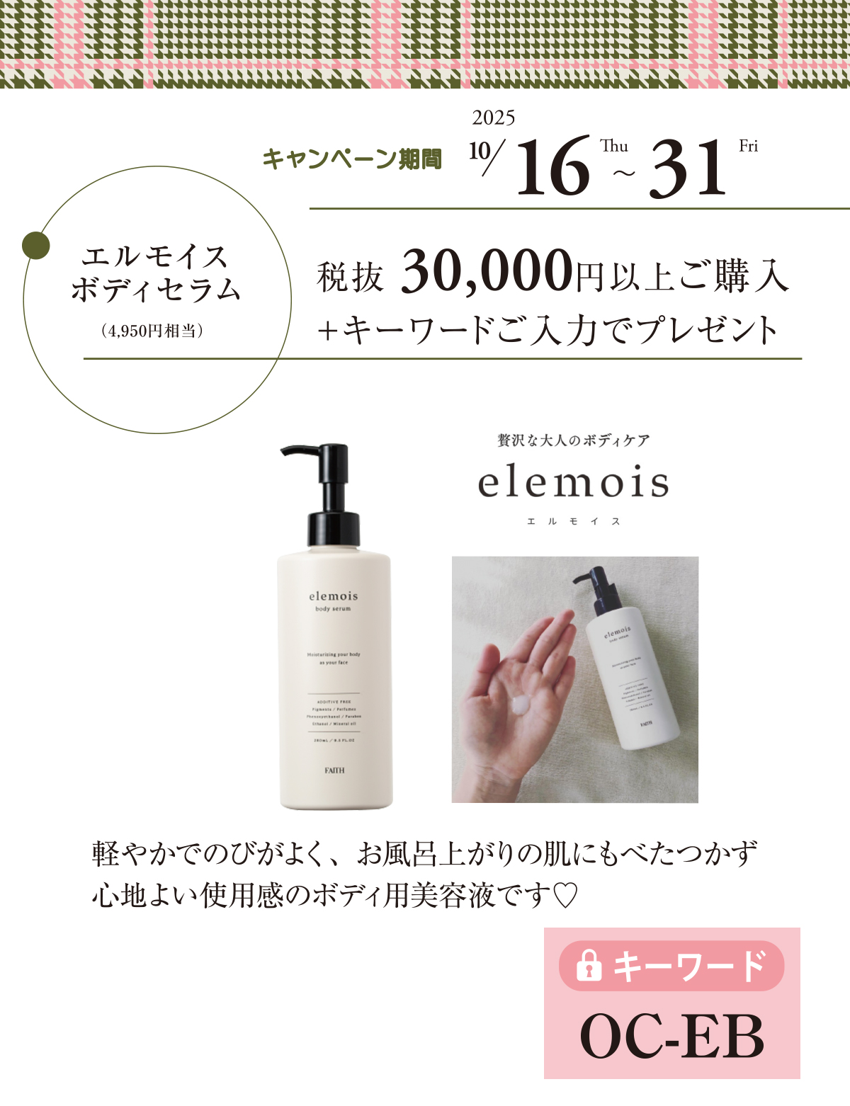 - 対象者:税抜30,000円以上ご購入+キーワードご入力でプレゼント