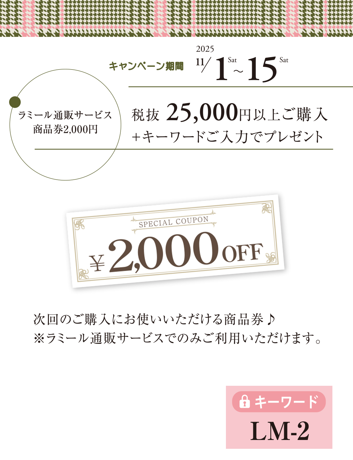 税抜 25,000円以上ご購入+キーワードのご入力でプレゼント