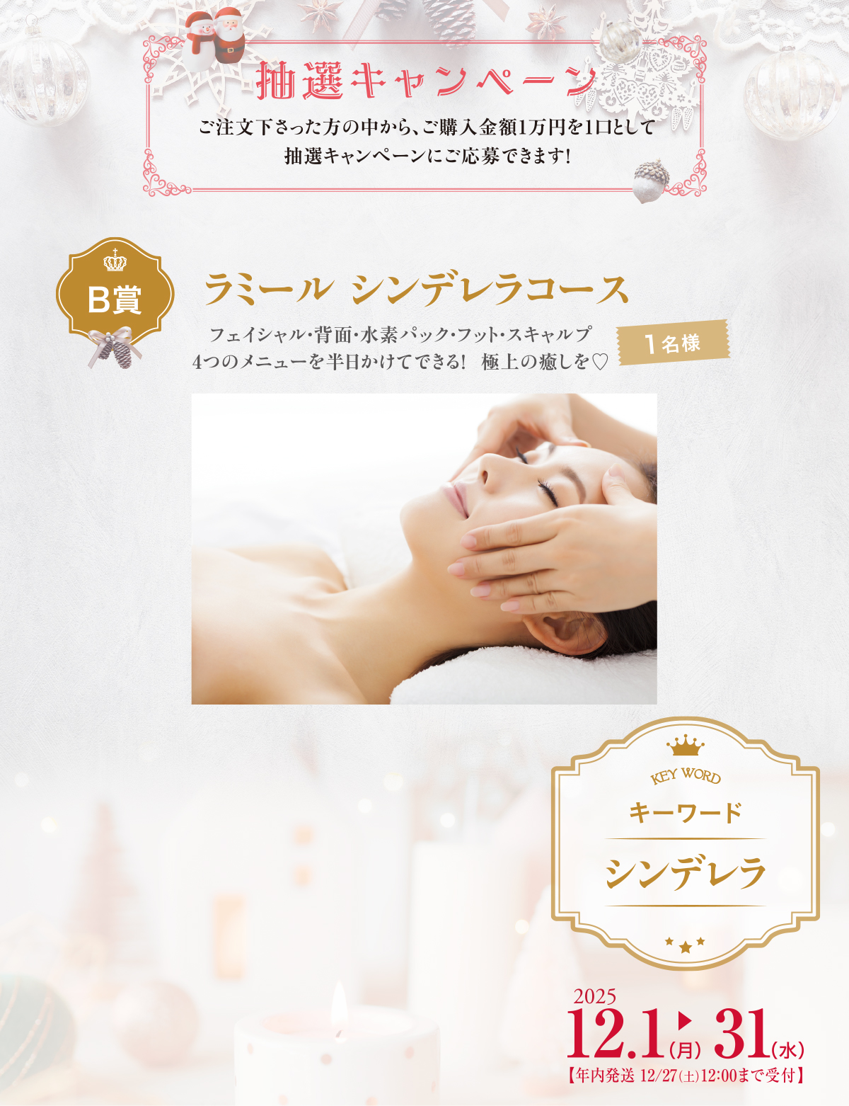 - 特典内容:B賞ラミール シンデレラコース1名様