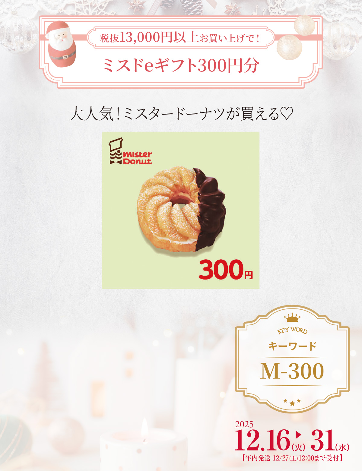 • 特典内容:大人気!ミスタードーナツが買える♡ミスドのeギフト300円分!