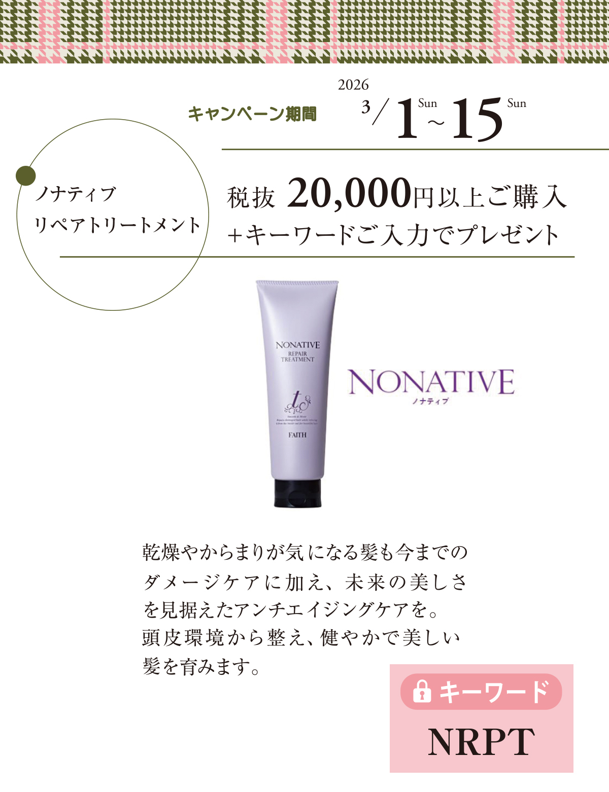 税抜 20,000円以上ご購入+キーワードのご入力でプレゼント