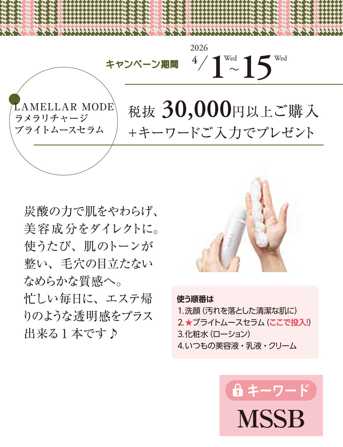 - 対象者:税抜30,000円以上ご購入+キーワードのご入力でプレゼント