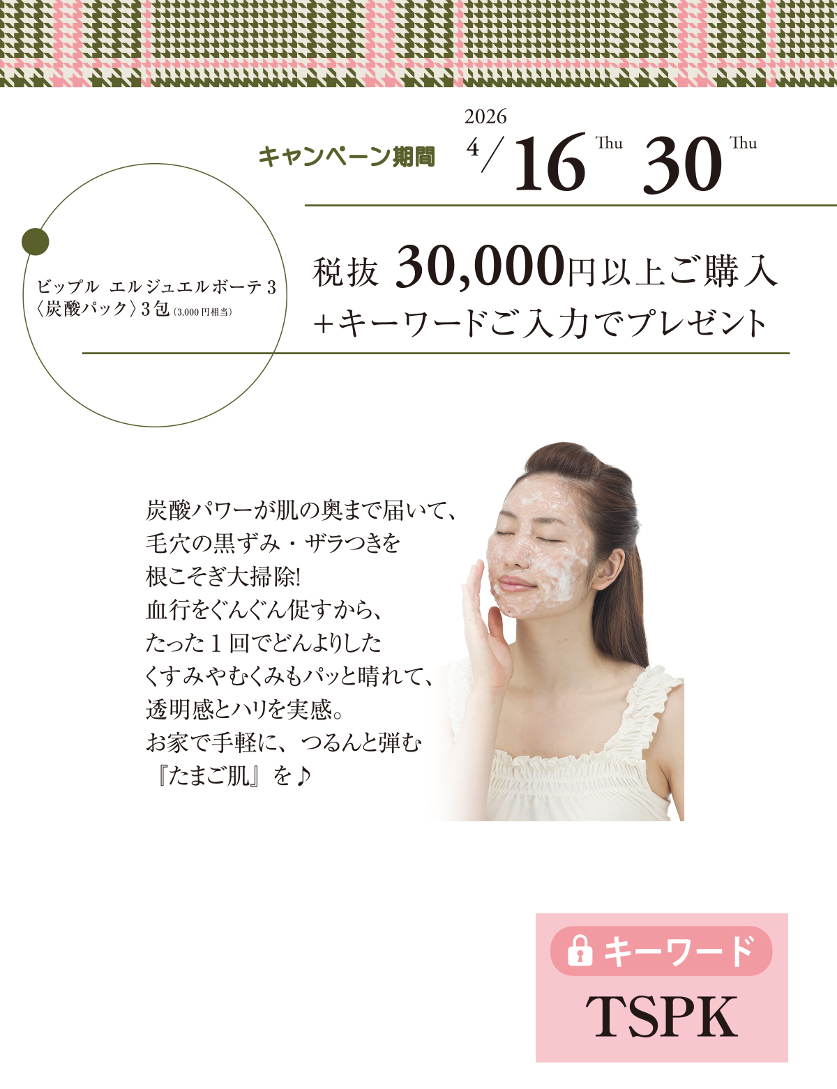- 対象者:税抜30,000円以上ご購入+キーワードのご入力でプレゼント