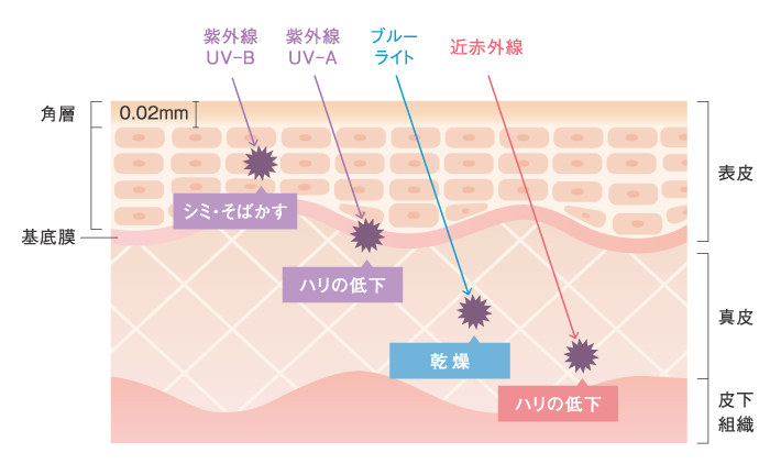 <お肌に影響を及ぼす様々な光線>