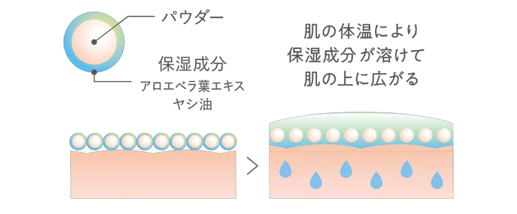 肌の上で保湿成分が解けて広がることで、乾燥しにくいしっとりとした肌を保ちます。