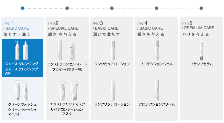セルディナシリーズは、ステップごとに肌をより美しく輝かせる設計です。