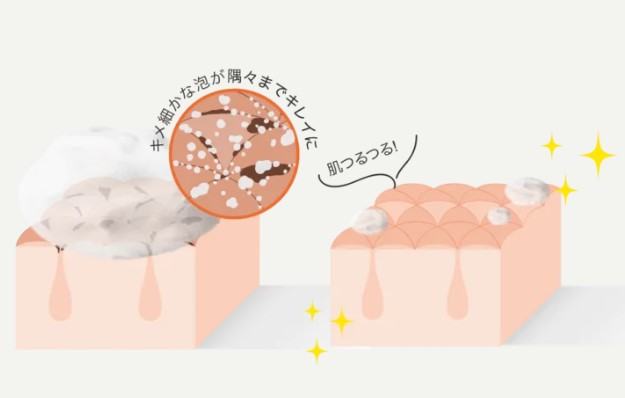キメ細かなもっちりクリーミーな泡で、厚くなった角質や汚れや古い角質を取り除き、洗いあがりさっぱりとしたクリアな素肌へと導きます。
