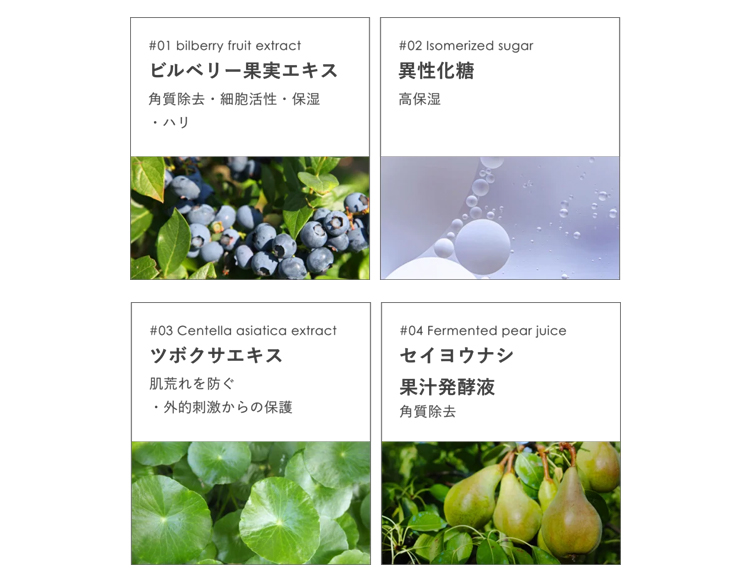 ※1.乳化剤不使用。クレンジング・洗顔料には一部洗浄剤として使用。ただし親水基、親油基とも石油起源の化合物から成る合成界面活性剤は不使用※2.ジメチコン類、シクロペンタシロキサン※3.カルボマー※4.パラベン、フェノキシエタノール、1,2-ヘキサンジオール