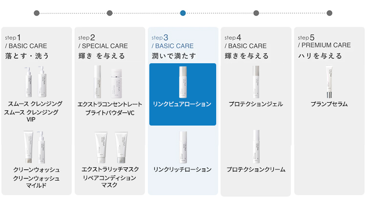 セルディナシリーズは、ステップごとに肌をより美しく輝かせる設計です。