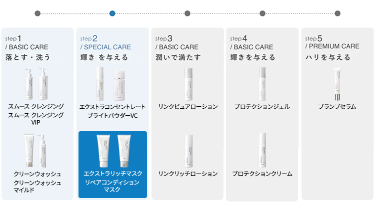 セルディナシリーズは、ステップごとに肌をより美しく輝かせる設計です。